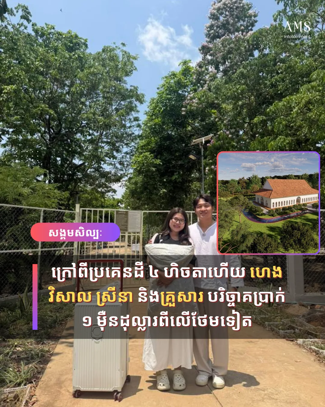 ក្រៅពីប្រគេនដី ៤ ហិចតាហើយ ហេង វិសាល ស្រីនា និងគ្រួសារ បរិច្ចាគប្រាក់ ១ ម៉ឺន​ដុល្លារពីលើថែមទៀត | APSARA MEDIA SERVICES