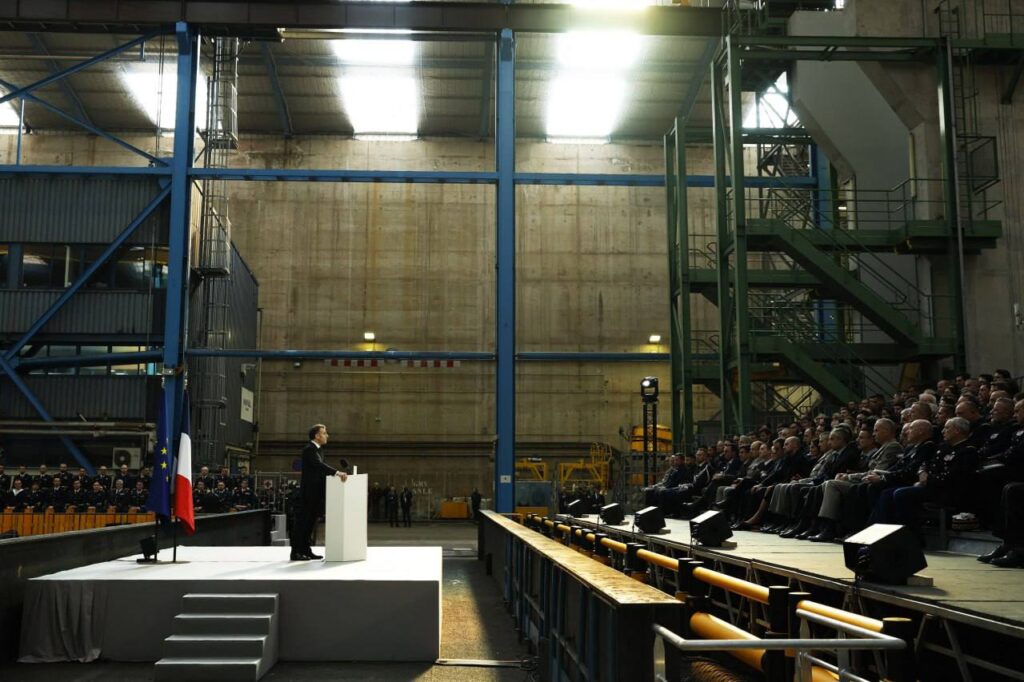 ថ្លែងនៅឯមូលដ្ឋានកងទ័ពជើងទឹក Ile Longue ដែលជាទីតាំងផ្ទុកនាវាមុជទឹកនុយក្លេអ៊ែរចំនួន ៤គ្រឿងរបស់បារាំងកាលពីថ្ងៃចន្ទ, លោកប្រធានាធិបតី Emmanuel Macron និយាយថា ការបង្កើនក្បាលគ្រាប់នុយក្លេអ៊ែរ គឺជារឿងមិនអាចខ្វះបាន ហើយវាក៏ជាផ្នែកមួយនៃយុទ្ធសាស្រ្តនុយក្លេអ៊ែរថ្មីរបស់ប្រទេសបារាំងផងដែរ ។